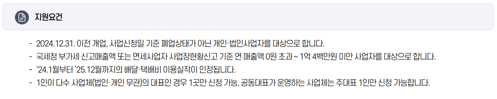 배달·택배 실적이 있으며 신청일 기준 폐업하지 않은 개인·법인사업자