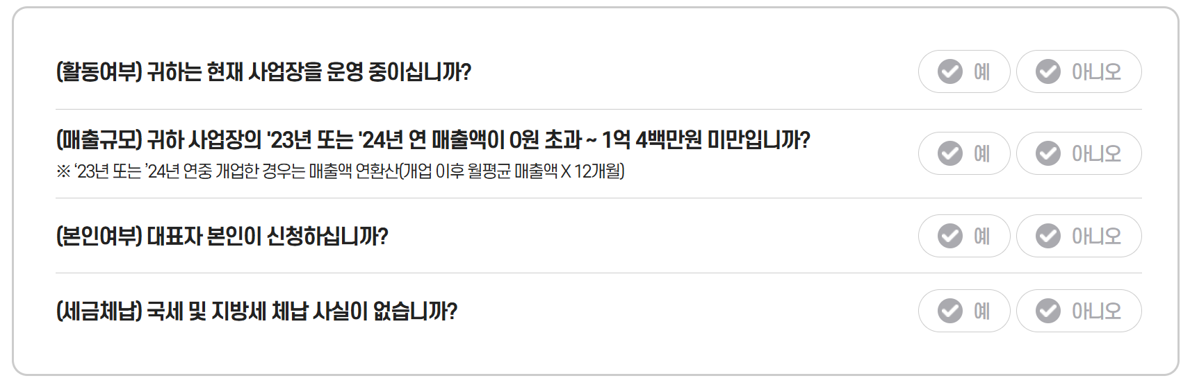: 세금 체납자(국세, 지방세)는 지원대상에서 제외.